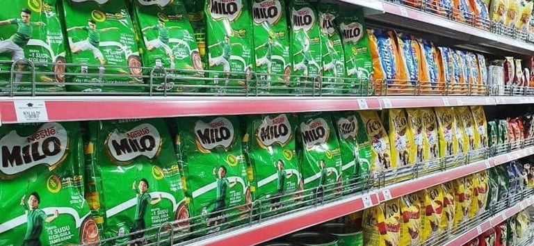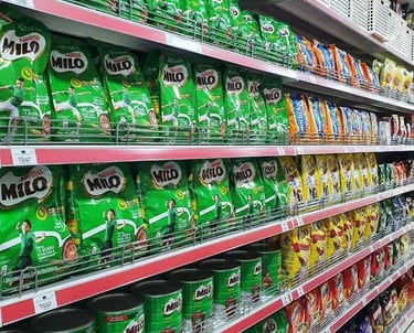a display in a grocery store filled with lots of milk